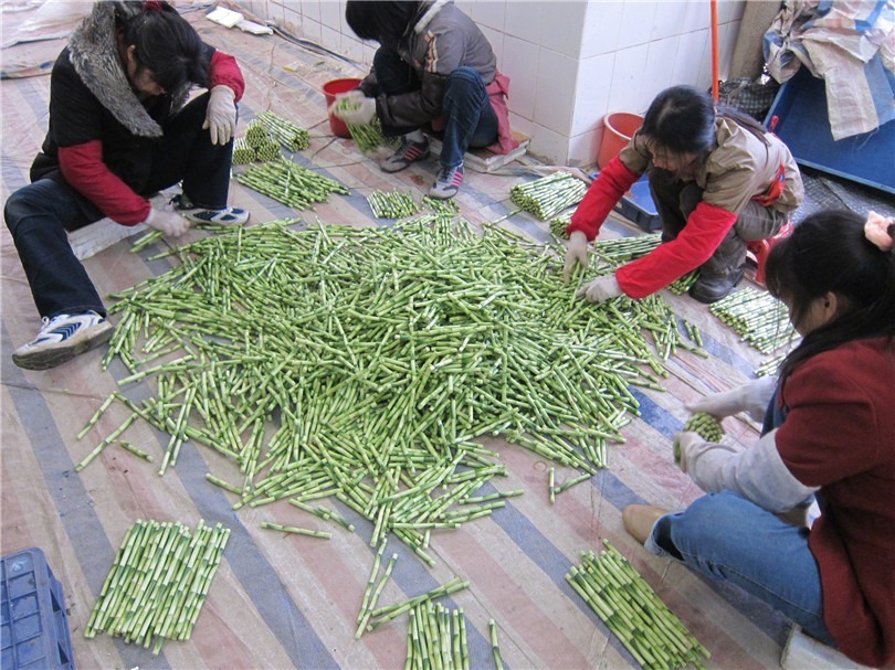 1. Leaf stripping: After entering the factory, the primitive Lucky Bamboos needs to remove their leaves immediately.